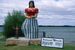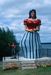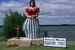 Woodsman Paul Bunyan's 17-foot-tall sweetheart, Lucette Diana Kensack, was built in 1952 by Doad Schroeder from fiberglass and wood. The original statue was erected for the town in 1991, and the character was named in a contest (runner-up: Landa Happy Waters). Paul Jr. is shown here standing by his mother but was moved to stand by City Hall in 2007. They are both said to have been born in Hackensack. Located nearby is a city park, playground, picnic shelter, fishing pier, boat ramp, and a chainsaw carving of Paul.